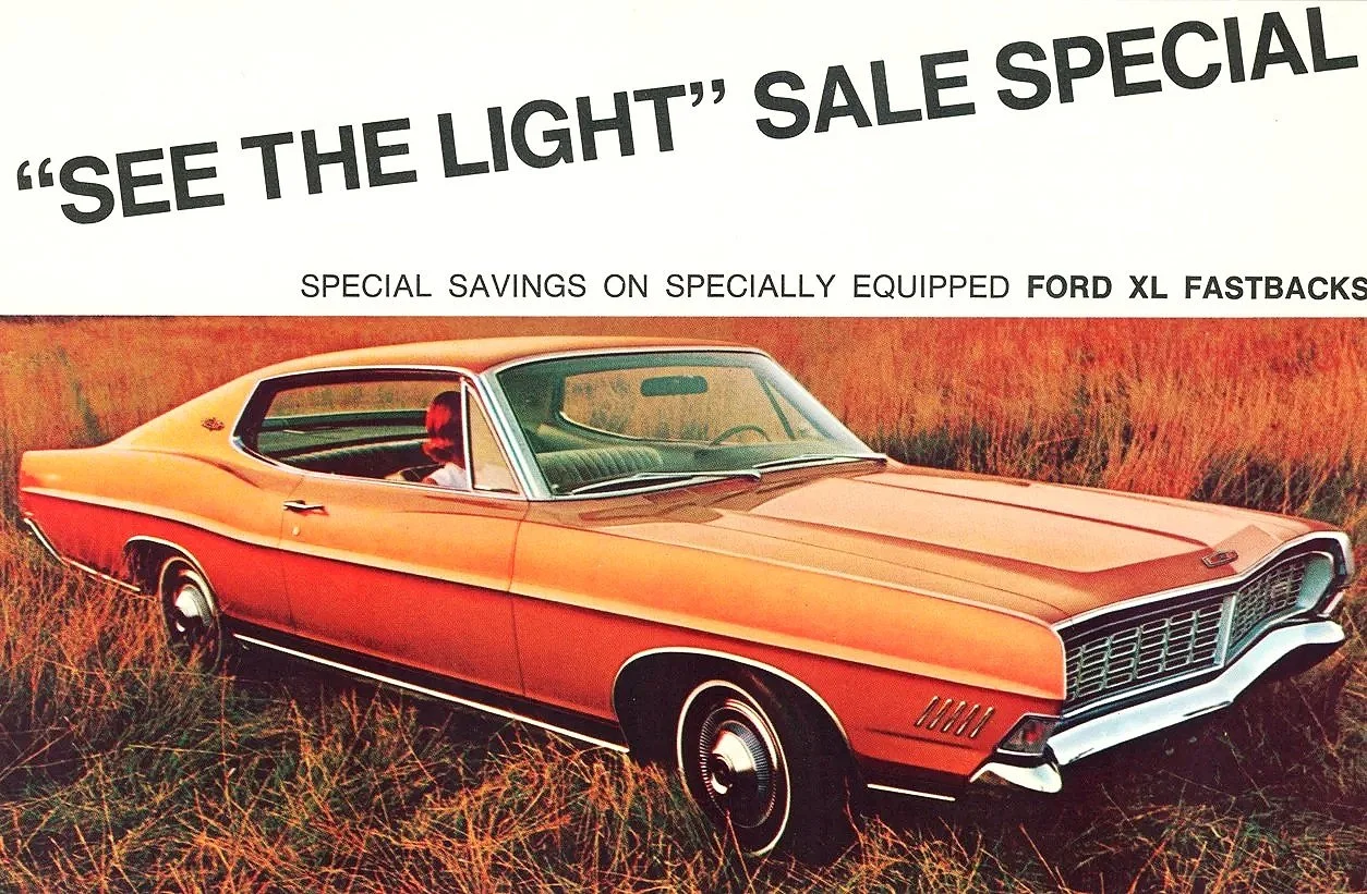 It would be impossible to cover all great American Fords in one gallery, so here at Tunnel Ram we’ve curated a cross-section of print advertising and promotional images for classic Ford models covering thirty years. We begin the journey with Ford’s sensational first all-new postwar model in 1949 and continue through to the late 1970s. They’re all here from the famous ‘49 and ‘50 singe spinner, the ‘51 twin spinner also known as the dual bullet, plus later Customline, Sunliner, Fairlane, Starliner, Galaxie and more.